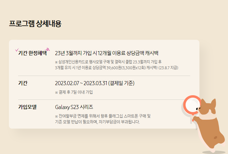 뿐만아니라 기간 한정혜택으로 3월31일까지 신청하면 12개월 이용료의 금액을 캐시백으로 돌려준다고 하네요!